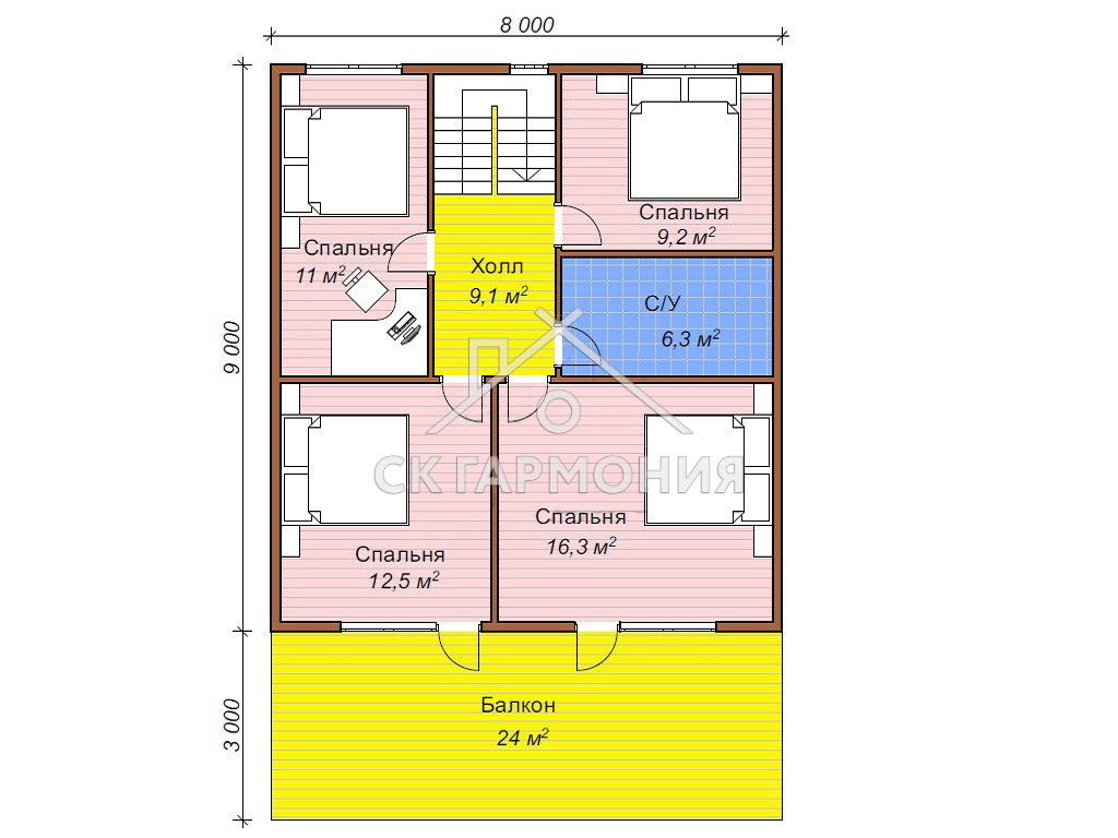 Цена строительства дома «Новороссийск» размером 8x12 и площадью 192 м2 - от 2 997 000 р.
