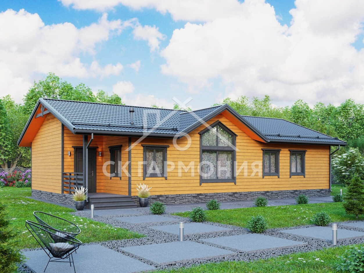 Проект дома «Первомайское» представляет собой элегантный одноэтажный дом с террасой, из экологически чистых материалов, который подходит для постоянного проживания. Строительство одноэтажного дома под ключ в Вологде и Вологодской области потребует сроки до 36 дней. Вы можете заказать строительство без отделки или с чистовой отделкой и коммуникациями.
