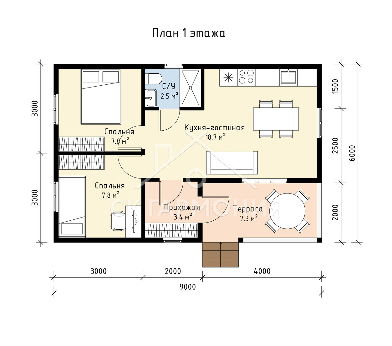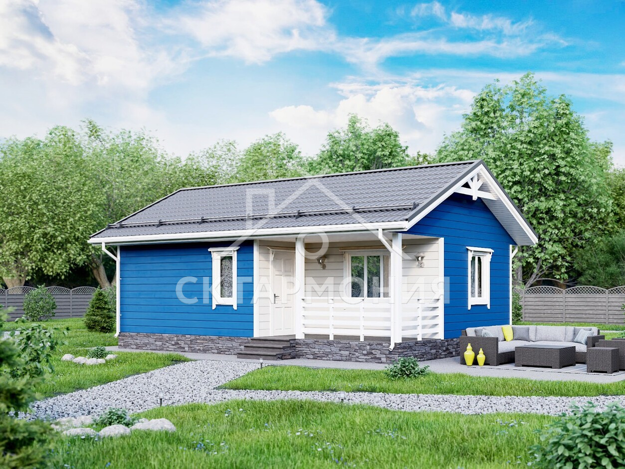Проект дома «Токсово» представляет собой элегантный одноэтажный дом с террасой, из экологически чистых материалов, который подходит для постоянного проживания. Строительство одноэтажного дома под ключ в Вологде и Вологодской области потребует сроки до 18 дней. Вы можете заказать строительство без отделки или с чистовой отделкой и коммуникациями.