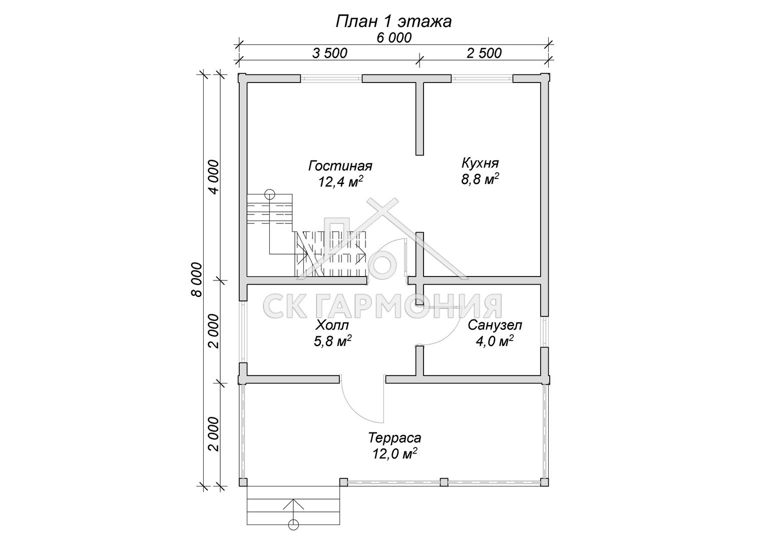 Дом из бруса 6x8, проект Рыбинск