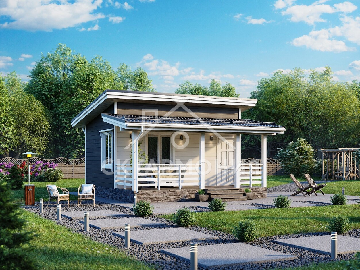 Проект дома «Касимово» представляет собой элегантный одноэтажный дом с террасой, из экологически чистых материалов, который подходит для постоянного проживания. Строительство одноэтажного дома под ключ в Вологде и Вологодской области потребует сроки до 18 дней. Вы можете заказать строительство без отделки или с чистовой отделкой и коммуникациями.