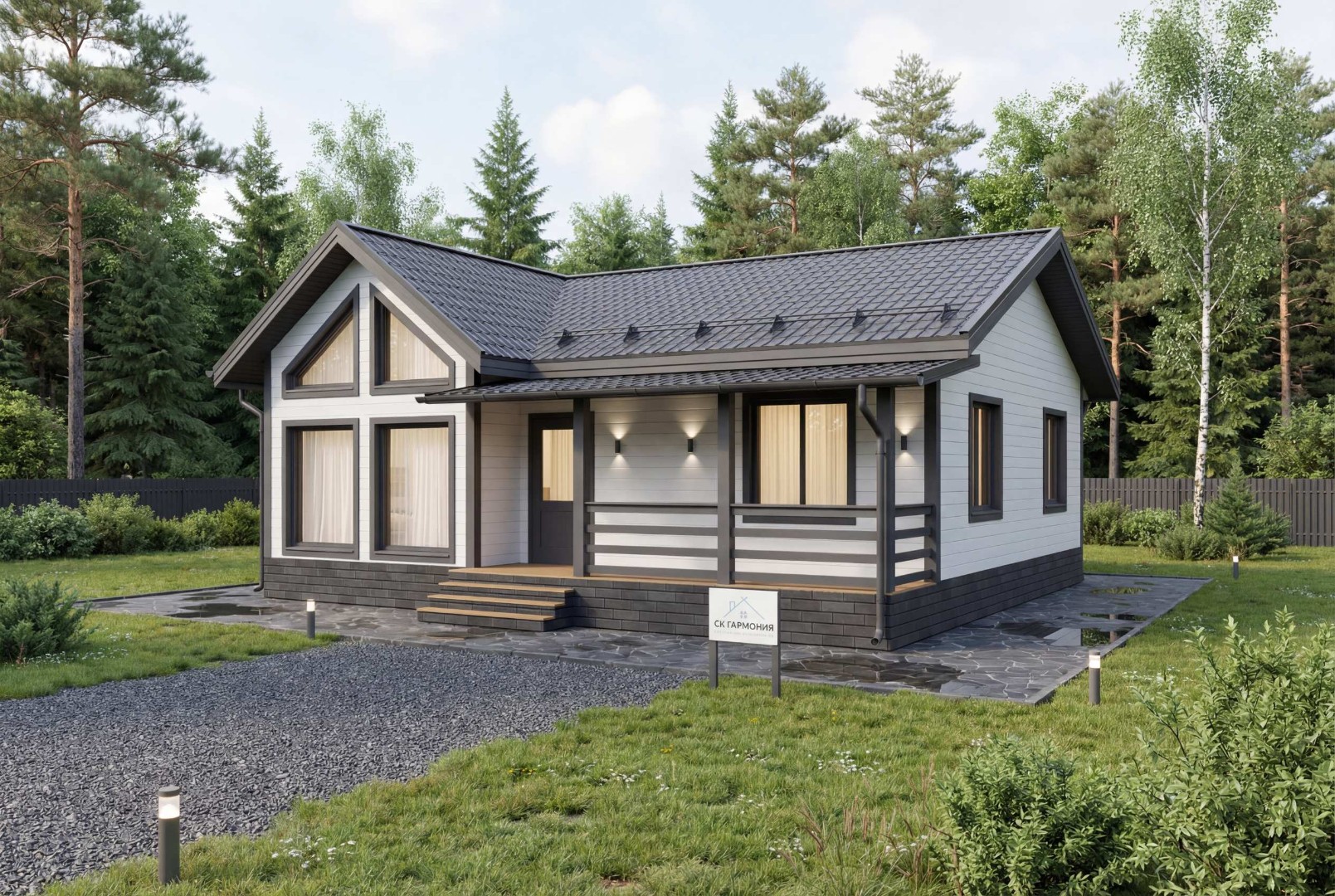 Проект дома «Ковров» представляет собой элегантный одноэтажный дом с террасой, из экологически чистых материалов, который подходит для постоянного проживания. Строительство одноэтажного дома под ключ в Вологде и Вологодской области потребует сроки до 25 дней. Вы можете заказать строительство без отделки или с чистовой отделкой и коммуникациями.