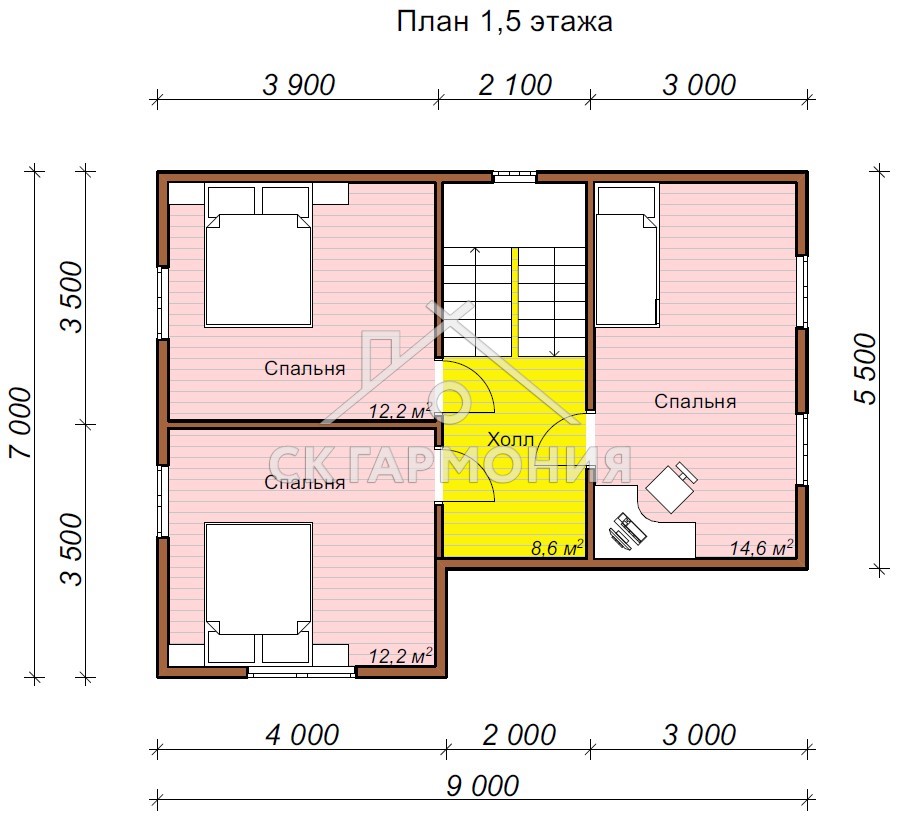 Цена строительства дома «Рощино» размером 7x9 и площадью 118 м2 - от 2 219 000 р.